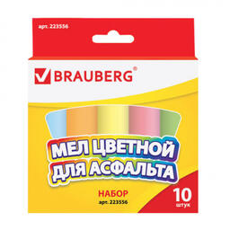 Мел цветной BRAUBERG, набор 10 шт., для рисования на асфальте, круглый, 223556