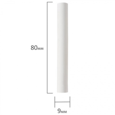 Изготовлен из высококачественного природного сырья без химических добавок. Не содержит твердых включений и не портит поверхность досок. Благодаря удобной круглой форме легко ложится в руку. Обеспечивает мягкое письмо. Не оставляет царапин. Легко смывается водой. Длина - 80 мм, диаметр - 9 мм. В наборе 100 белых мелков, упакованных в картонную коробку.