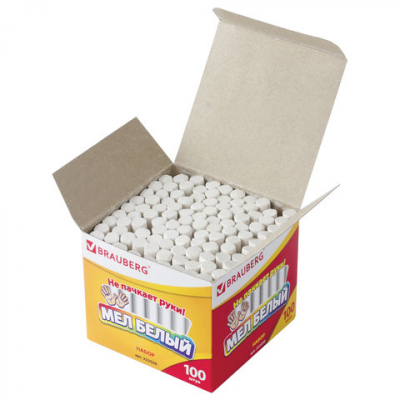 Мел белый BRAUBERG, АНТИПЫЛЬ, набор 100 штук, круглый, 223550 SAM_223550