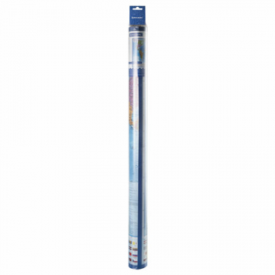 Настенная карта мира с масштабом 1:28 000 000 обладает размером 117х80 см. Выполнена из ламинированной бумаги плотностью 170 г/м2. Поставляется в упаковке с европодвесом.