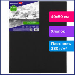 Холст на подрамнике черный BRAUBERG ART CLASSIC, 40х50см, 380 г/м, хлопок, мелкое зерно, 191651