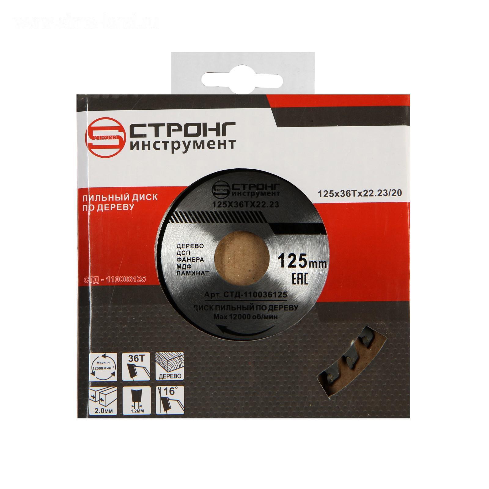 Диск пильный по дереву STRONG СTД-110036125, 125х22.2x36T 5666025