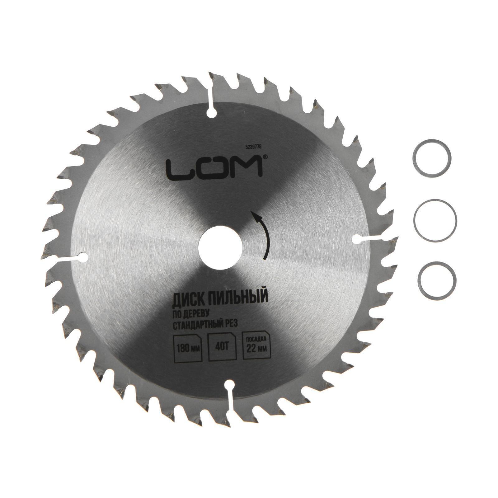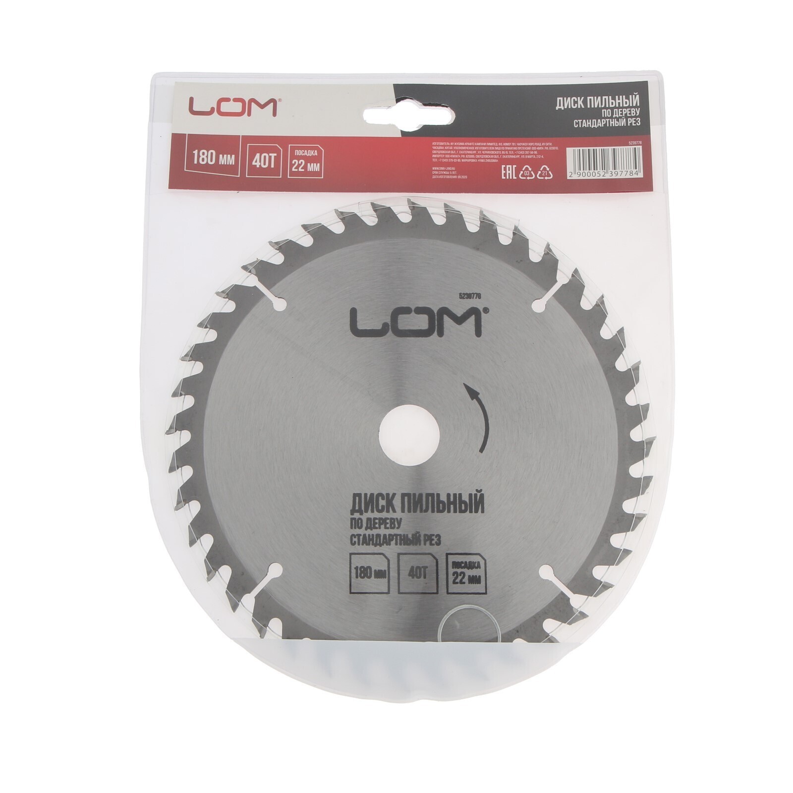 Диск пильный по дереву ЛОМ, стандартный рез, 180 х 22 мм, 40 зубьев 5239778