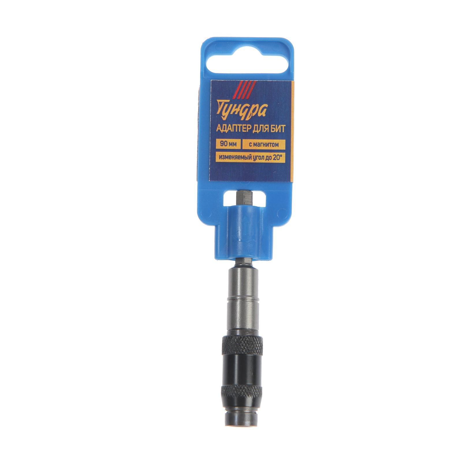 Адаптер для бит ТУНДРА, изменяемый угол до 20°, с магнитом, 90 мм 7069403