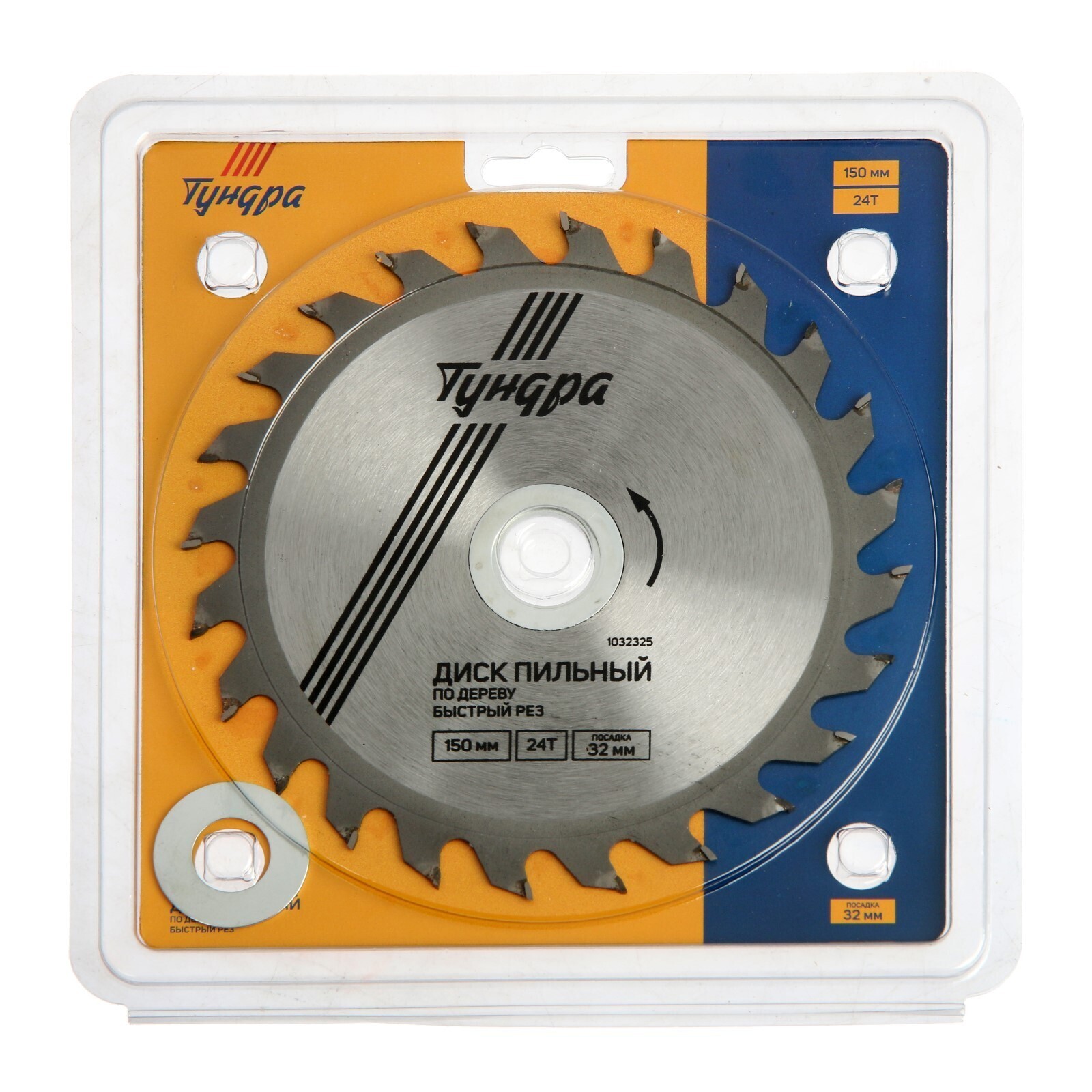 Диск пильный по дереву ТУНДРА, быстрый рез, 150 х 32 мм (кольца на 22,20,16), 24 зуба 1032325