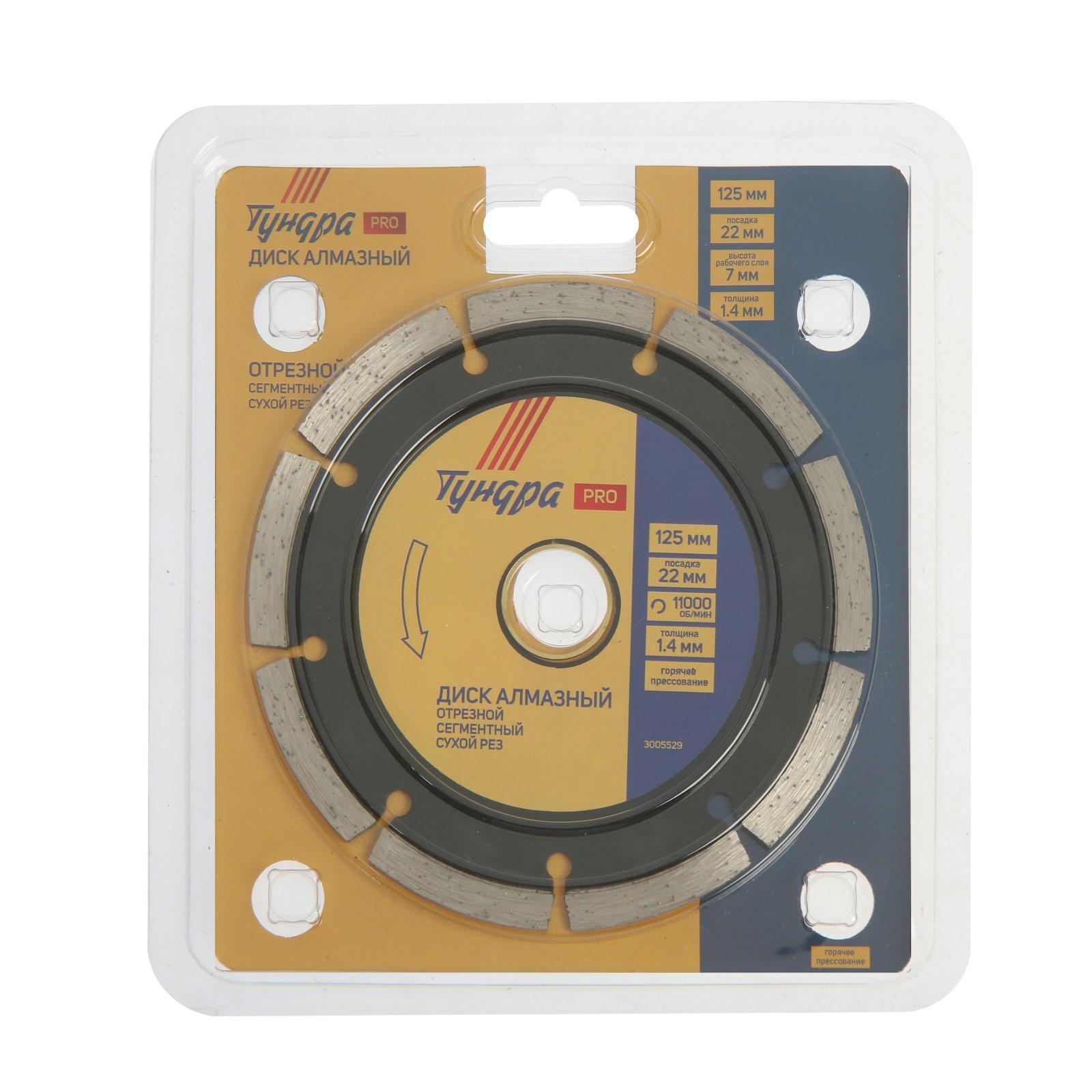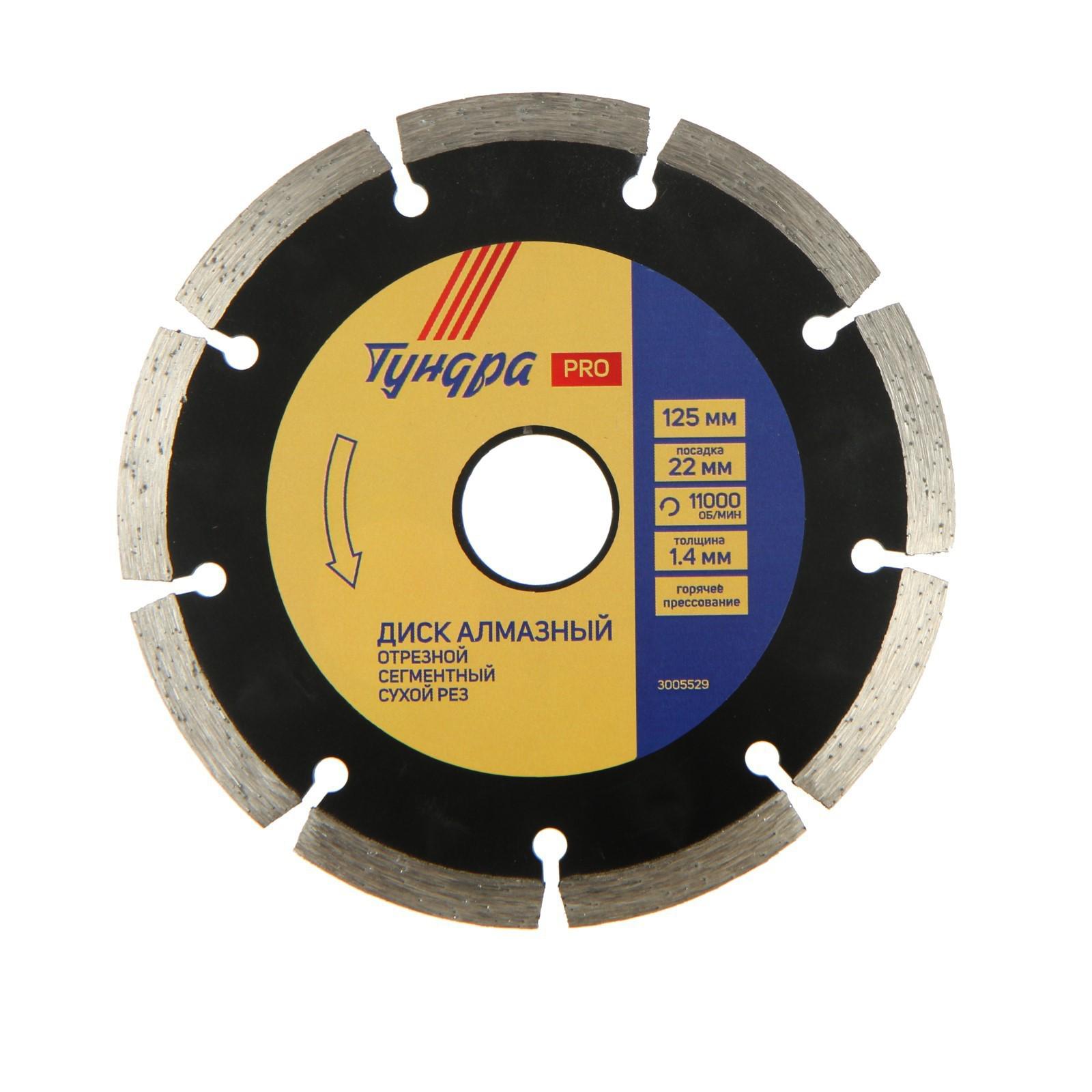 Диск алмазный отрезной ТУНДРА PRO, тонкий, сегментный, сухой рез, 125 х 1.4 х 22 мм 3005529