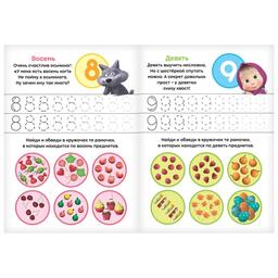 Внутри вы найдёте интересные задания, выполняя которые, малыш выучит цифры до 10. Также в книге есть забавные иллюстрации с любимыми героями мультфильма «Маша и Медведь».
