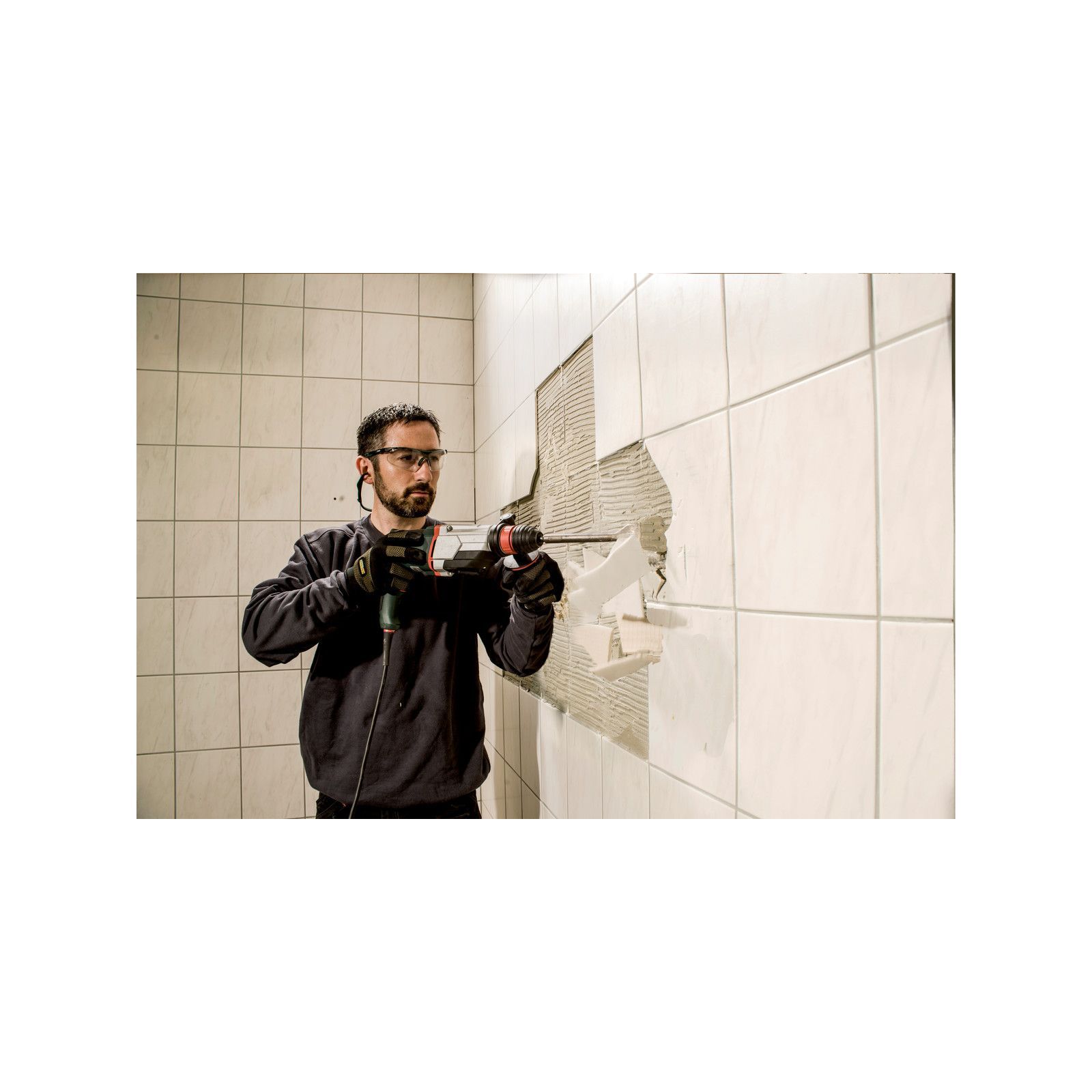 3-режимна машина, яка може свердлити бетон, камінь, цеглу, виконувати легкі роботи в режимі відбійного молотка, а також свердління без удару металу, дерева та пластику.