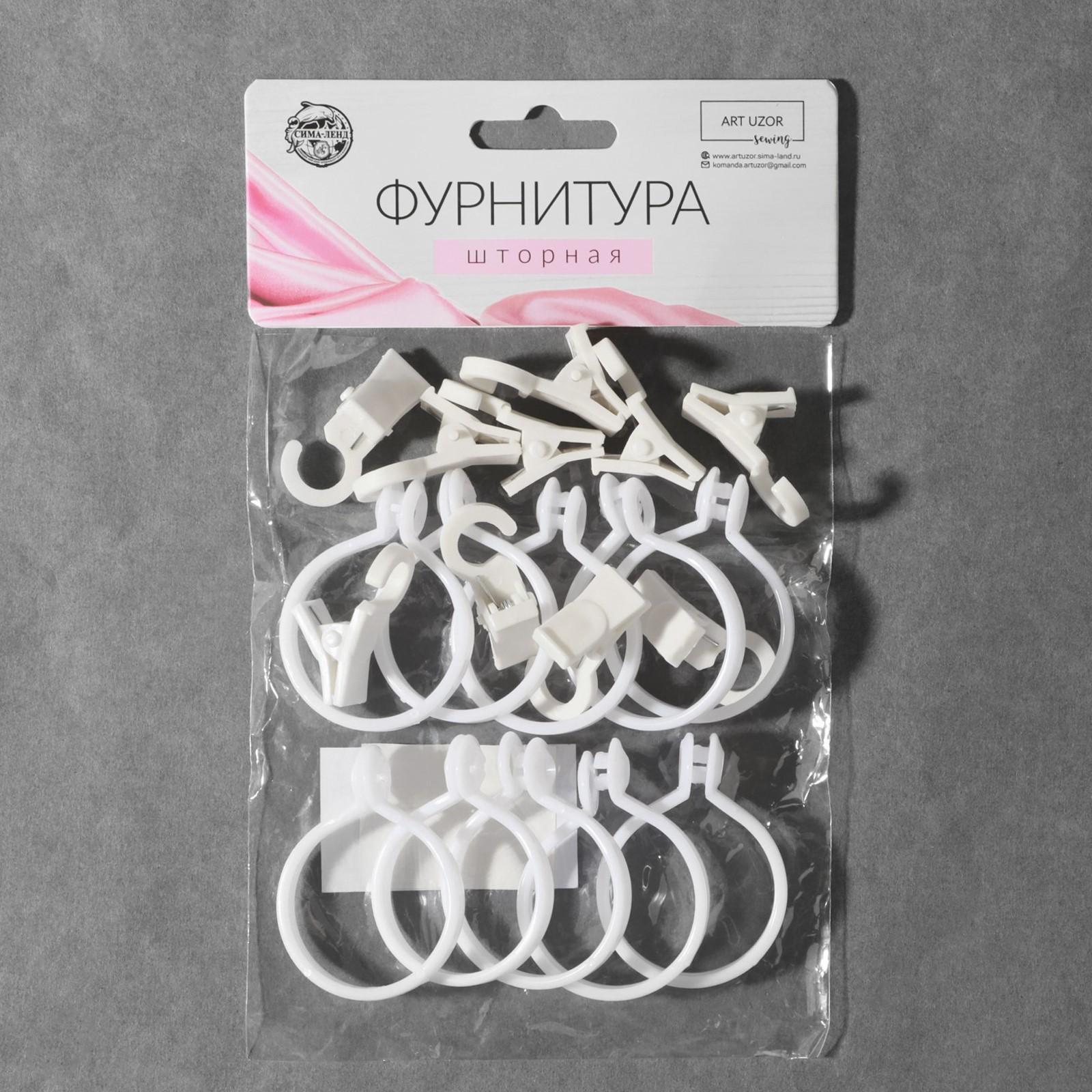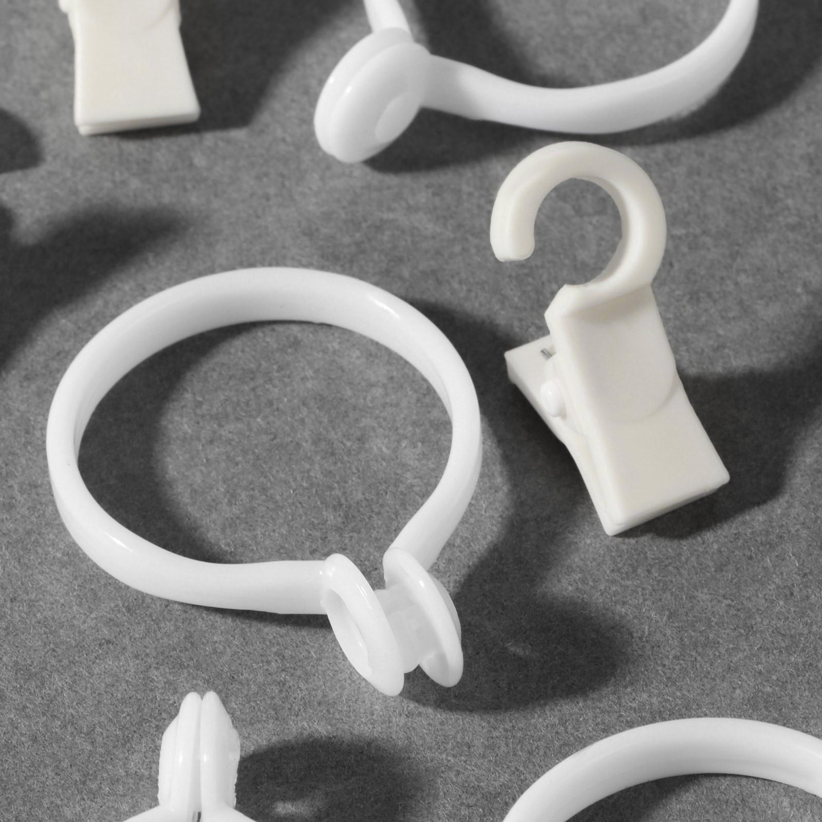 Набор для штор, кольца и крючки, 10 шт, цвет белый 5162263