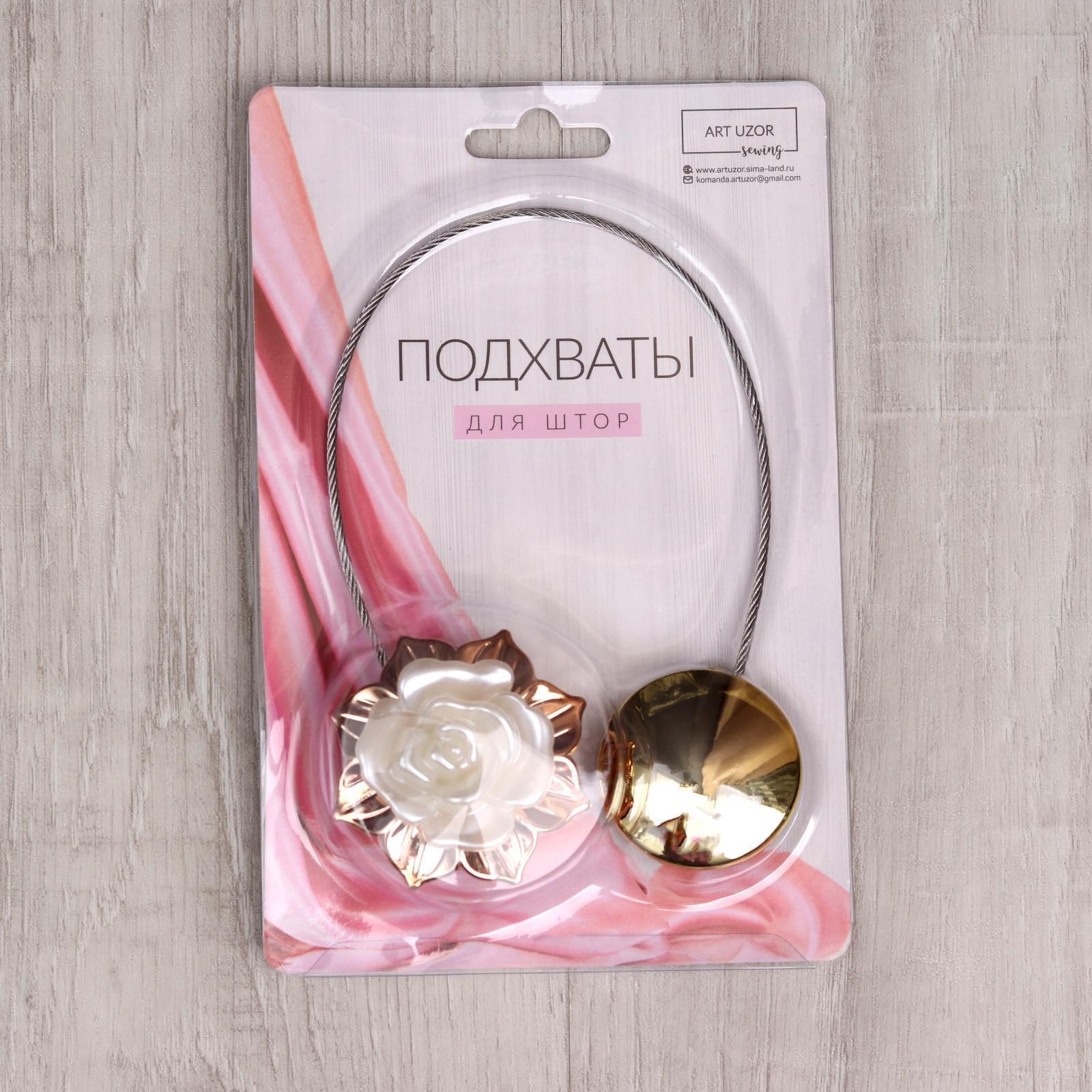 Подхват для штор «Цветок», d = 5,5 см, цвет молочный/золотой 4575706