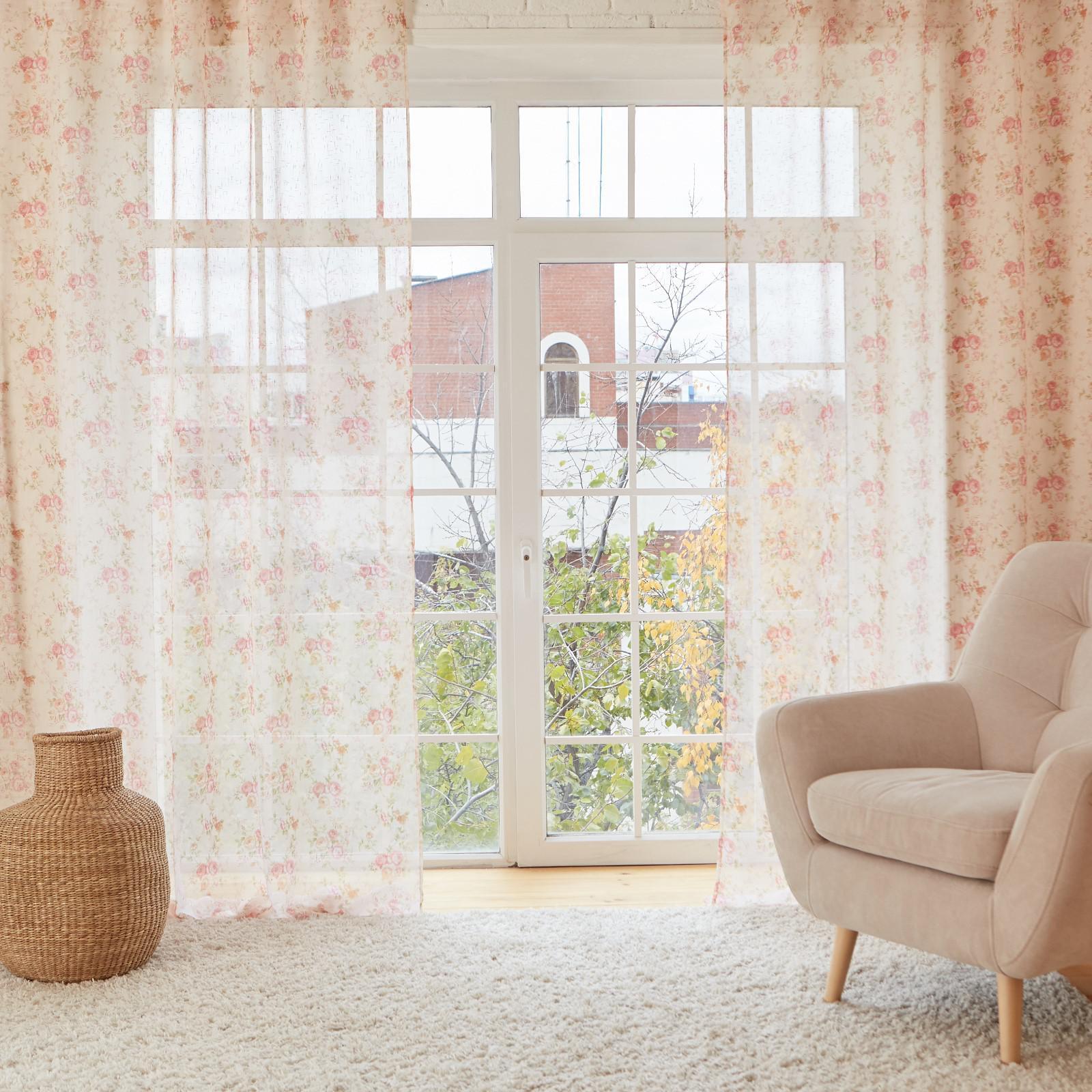 Штора тюлевая "Этель" 135х270 см Нежные цветы без утяжелителя, 100% п/э 2732435