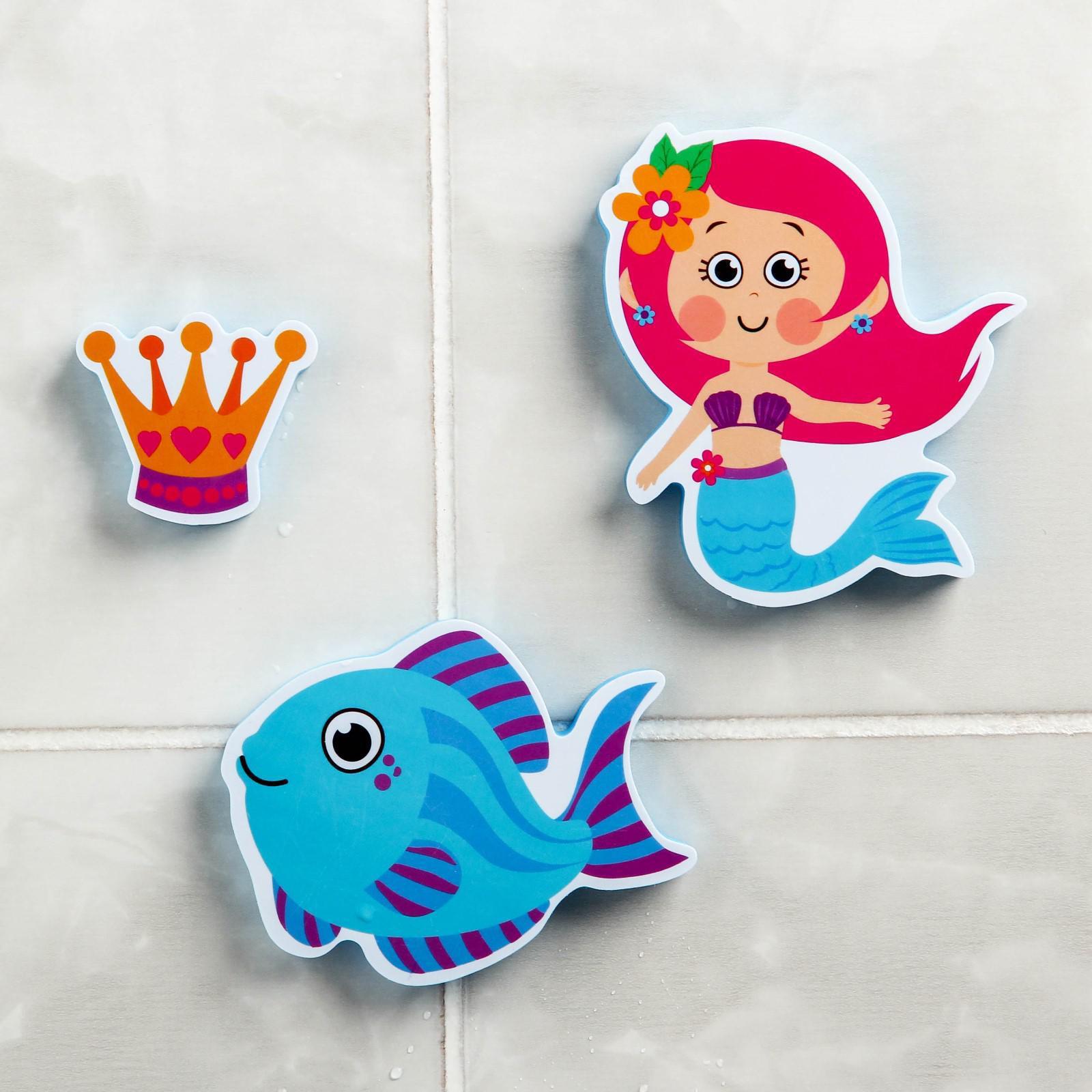 Наклейки в ванную из EVA «Наша русалочка» + сетка для хранения игрушек на присосках 1874870