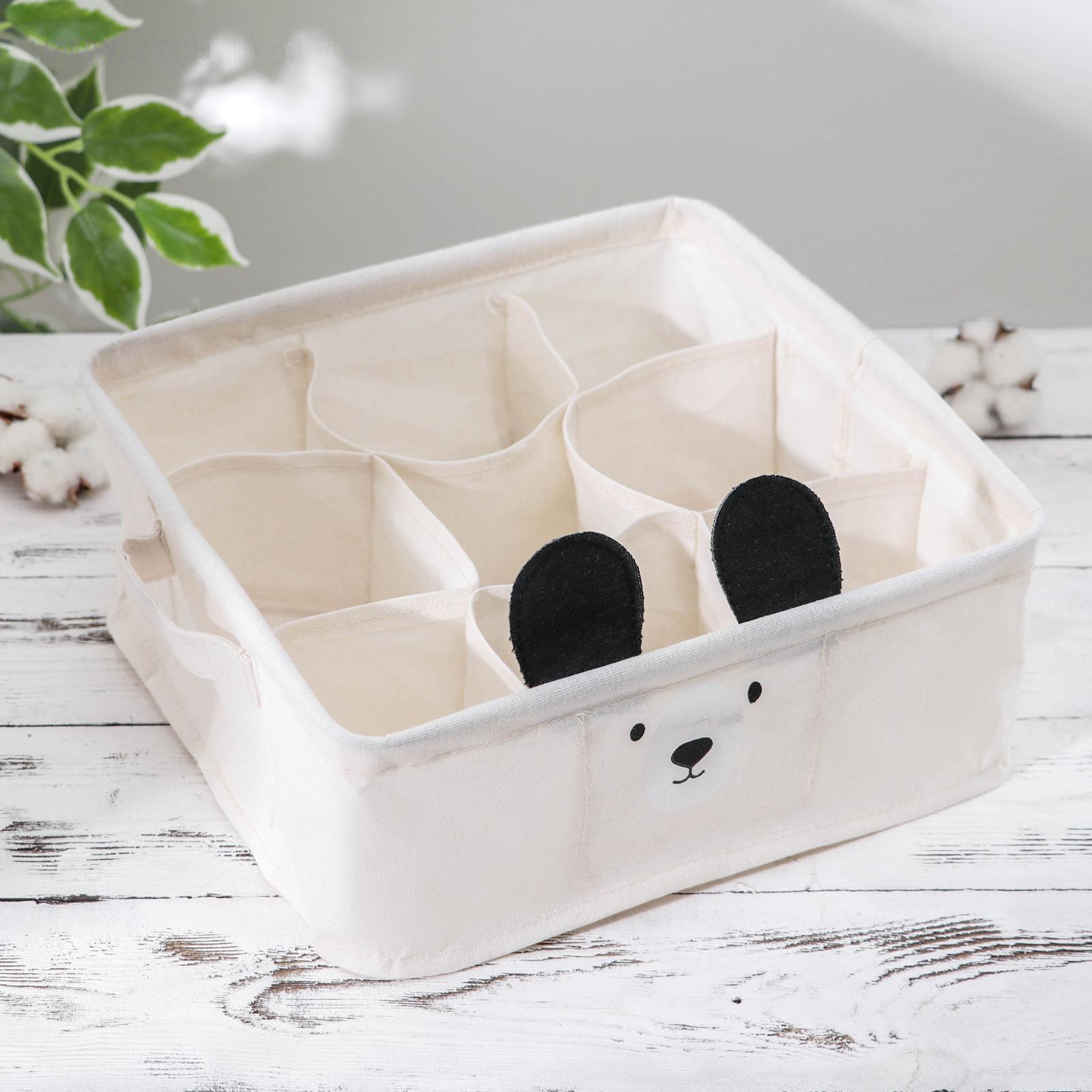 Корзина для хранения с ручками «Мишка», 9 ячеек, 28×28×11 см, цвет белый 5060182