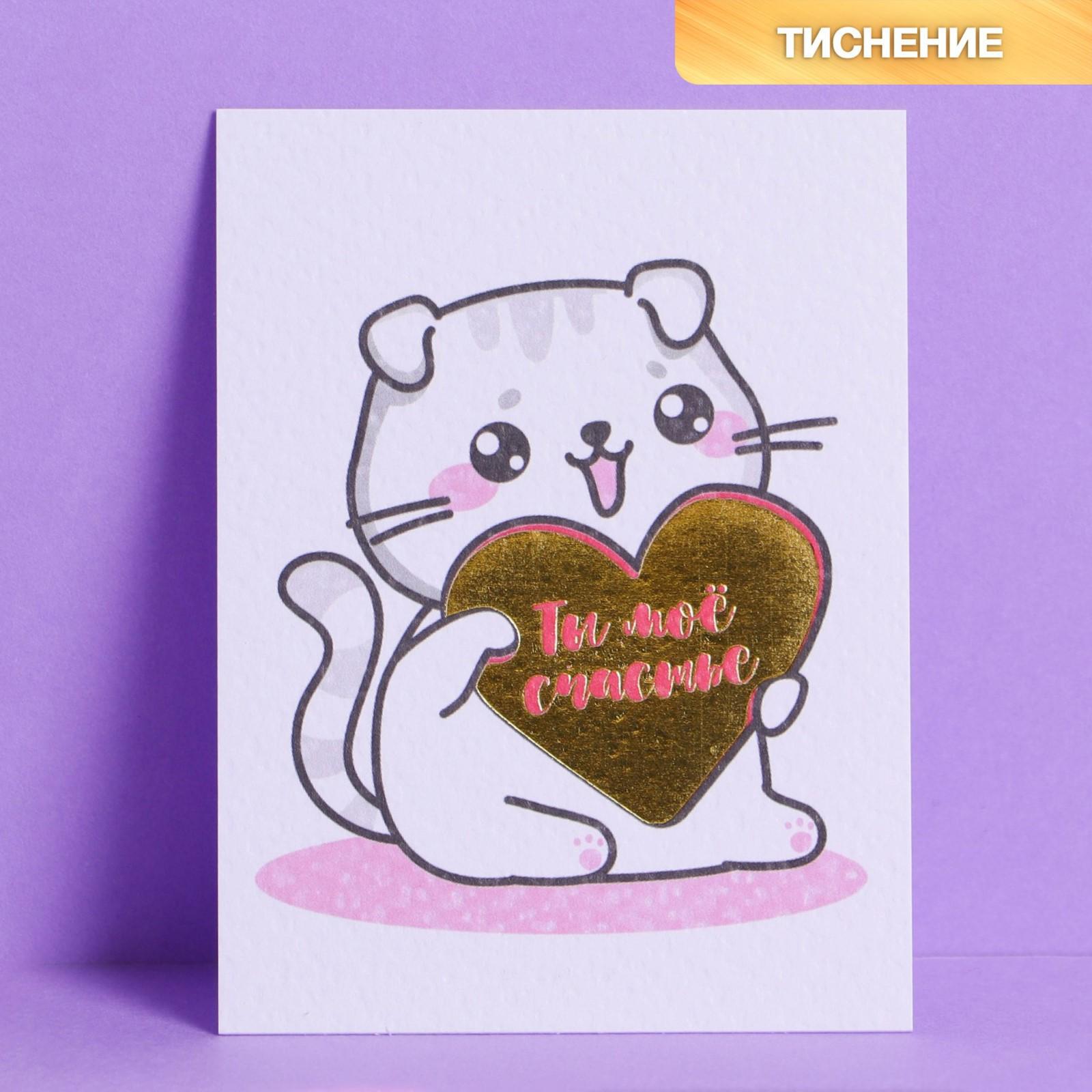 Поздравительная открытка на акварельном картоне с тиснением «Ты мое счастье», 8 × 6 см 5429584