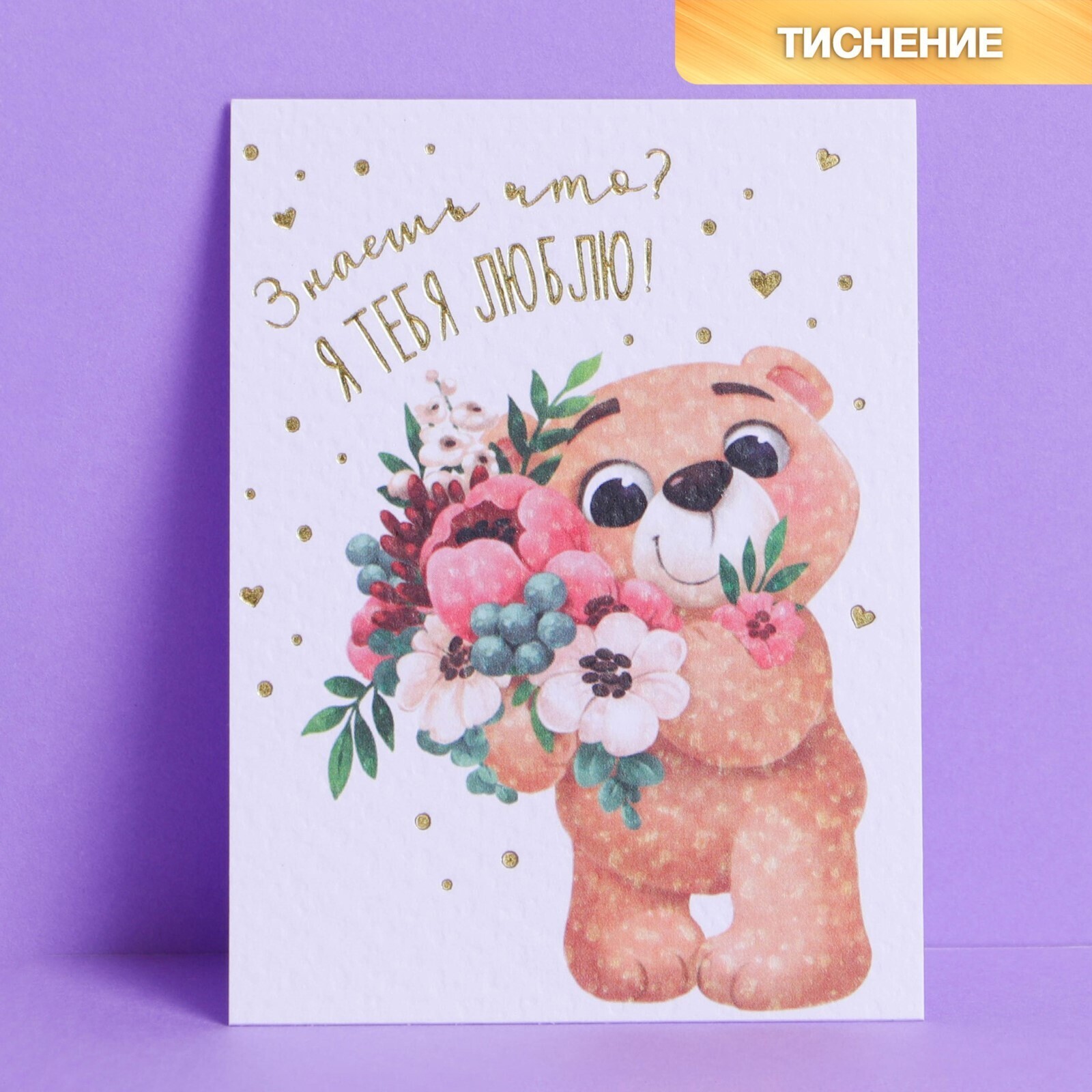 Поздравительная открытка на акварельном картоне с тиснением «Мишутка», 8 × 6 см 5429586