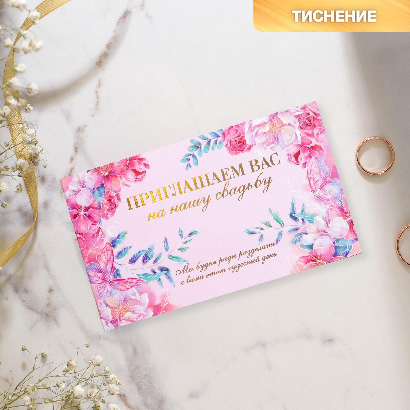 Приглашение на свадьбу «Цветы» , с тиснением 9079051
