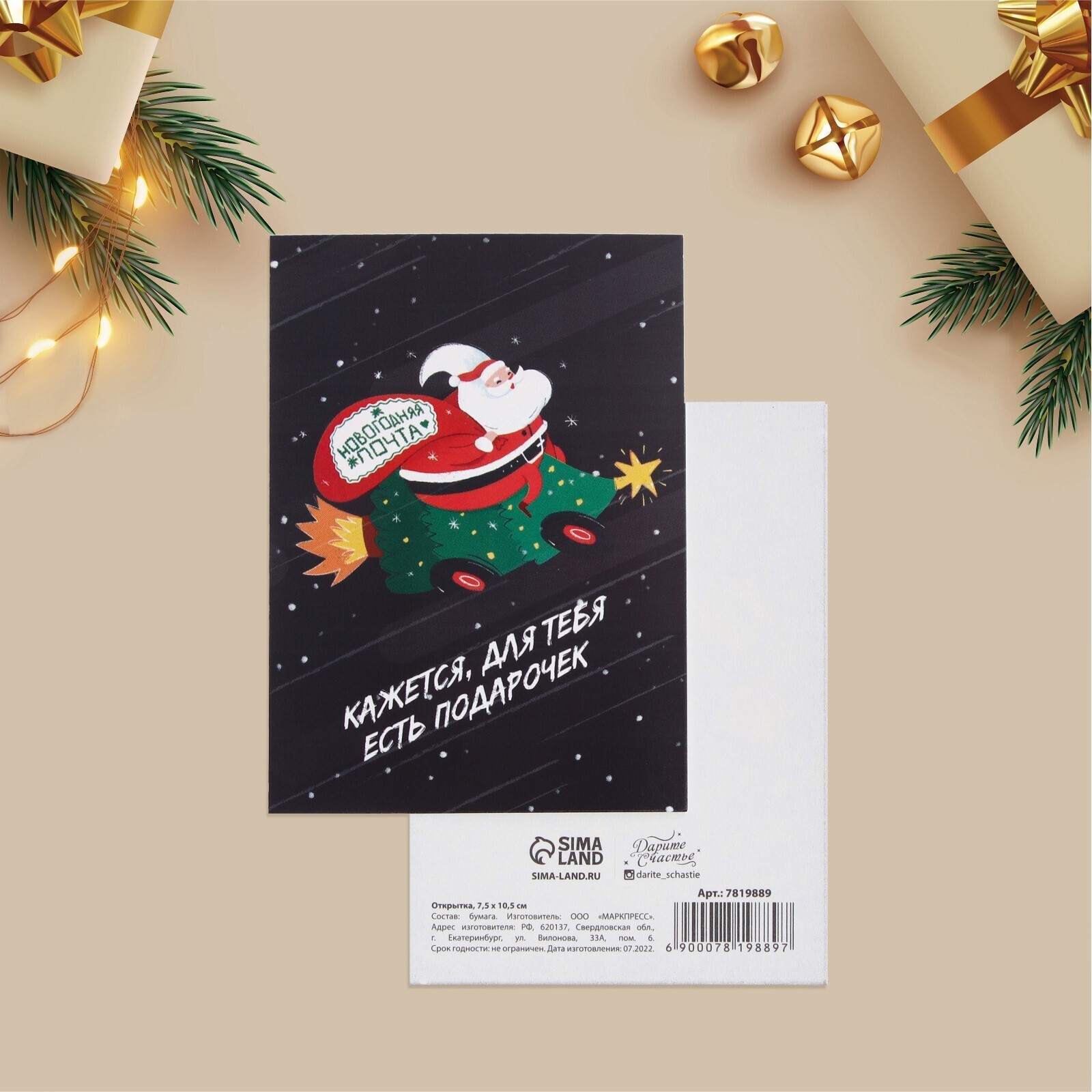 Открытка на каждый день «Новогодняя почта», Дед Мороз, 7.5 × 10.5 см 7819889