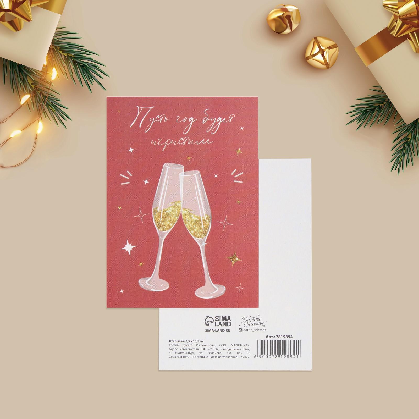 Открытка на каждый день «Игристый год», бокалы, 7.5 × 10.5 см 7819894