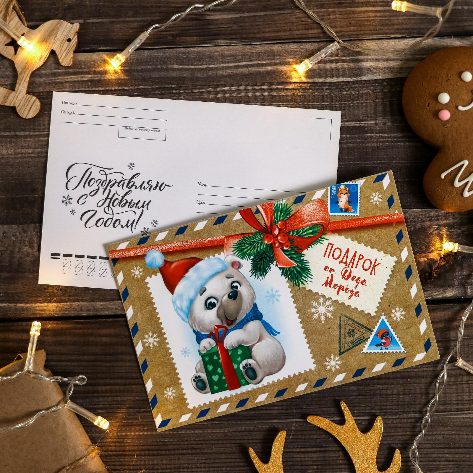 Почтовая карточка "Подарок от Деда Мороза" 10 х 15см 5179863