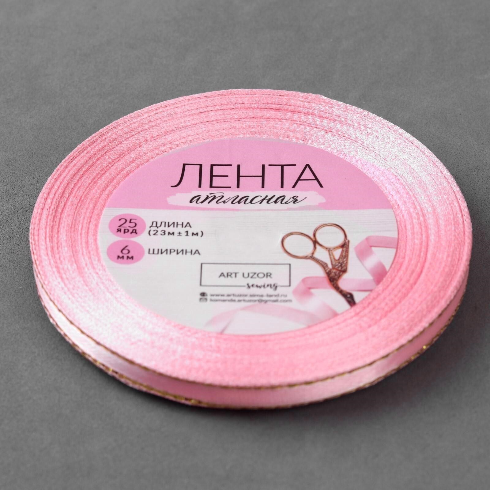 Лента атласная «Золотые нити», 6 мм × 23 ± 1 м, цвет розовый №004 1902786
