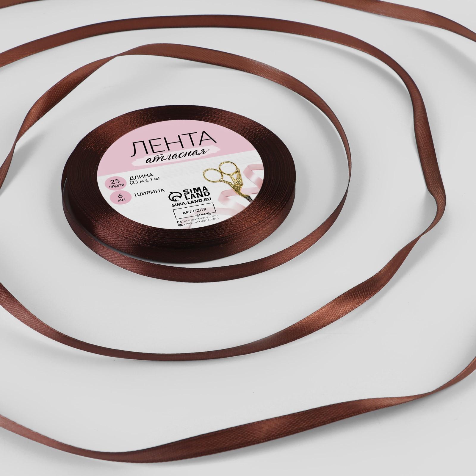 Лента атласная, 6 мм × 23 ± 1 м, цвет коричневый №74 1218125