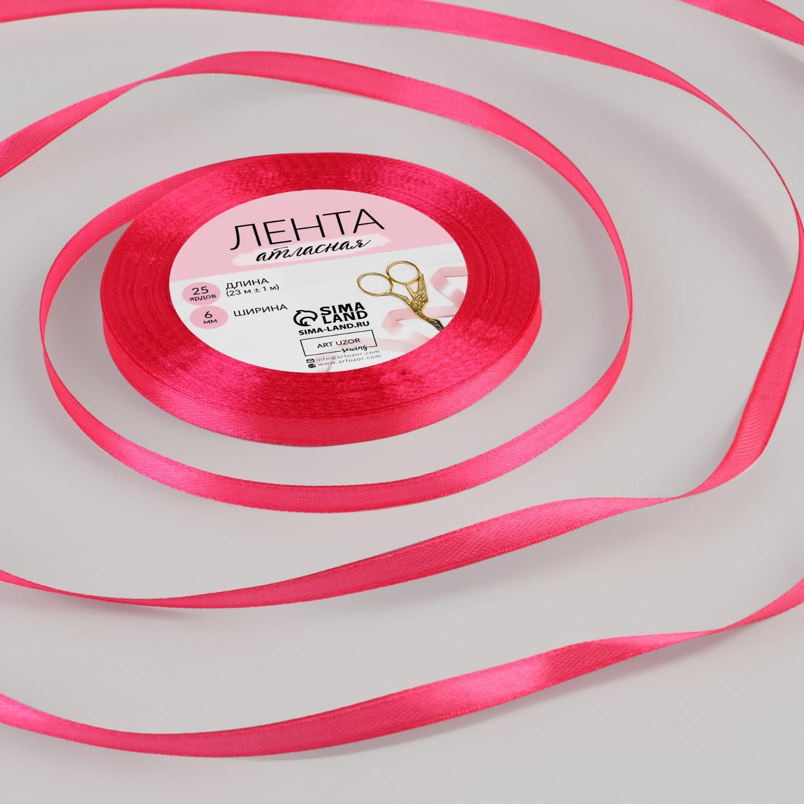 Лента атласная, 6 мм × 23 ± 1 м, цвет ярко-розовый №89 1218069
