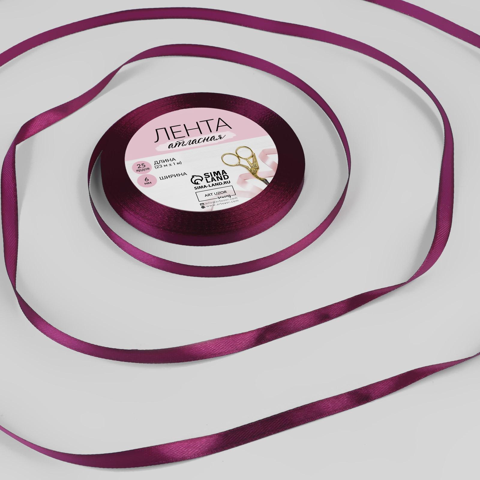 Лента атласная, 6 мм × 23 ± 1 м, цвет винный №152 1218135