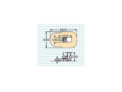 Размер: 3320х1250х2300 мм, высота площадки 650 мм.