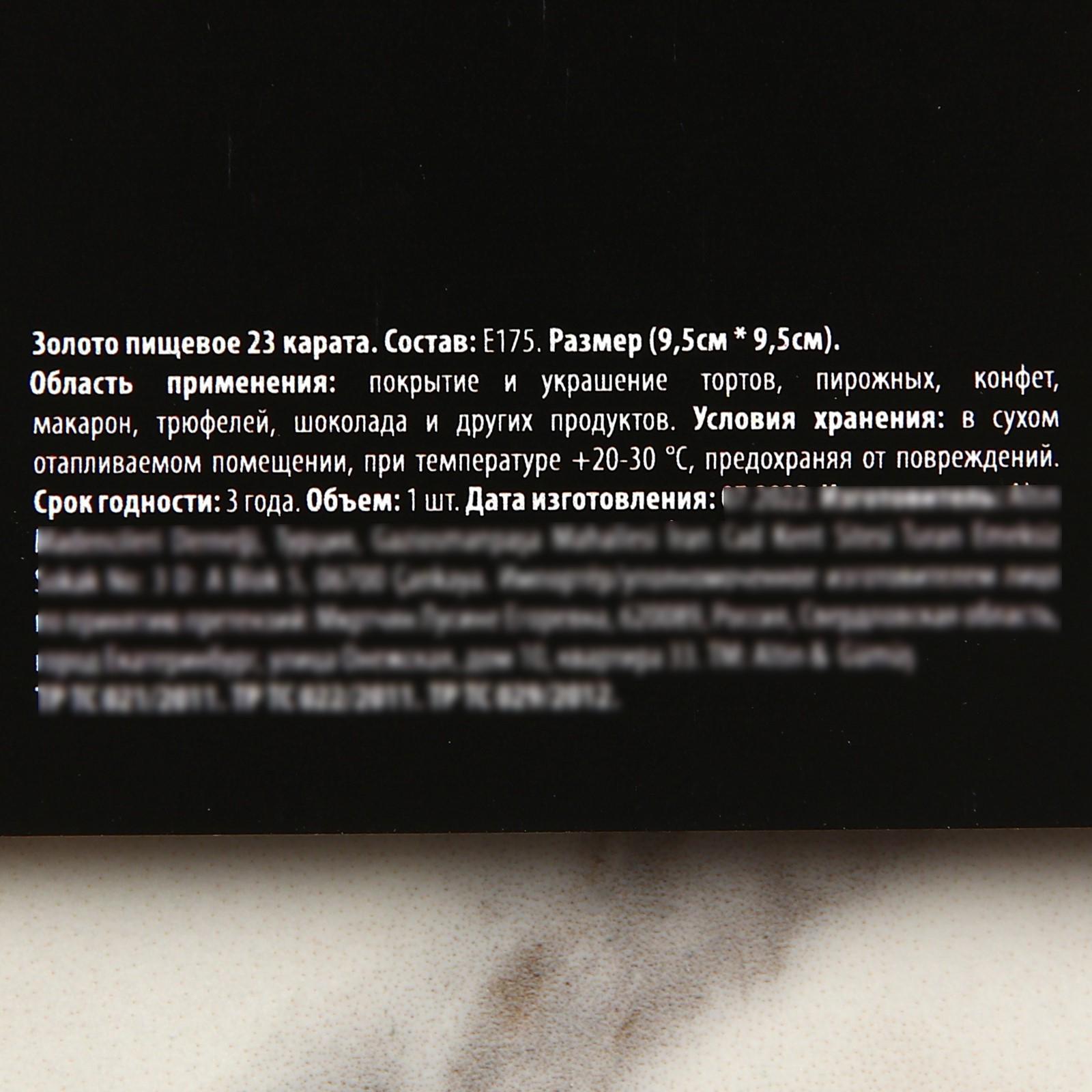 Пищевое золото в листе, 1 шт. 9178016