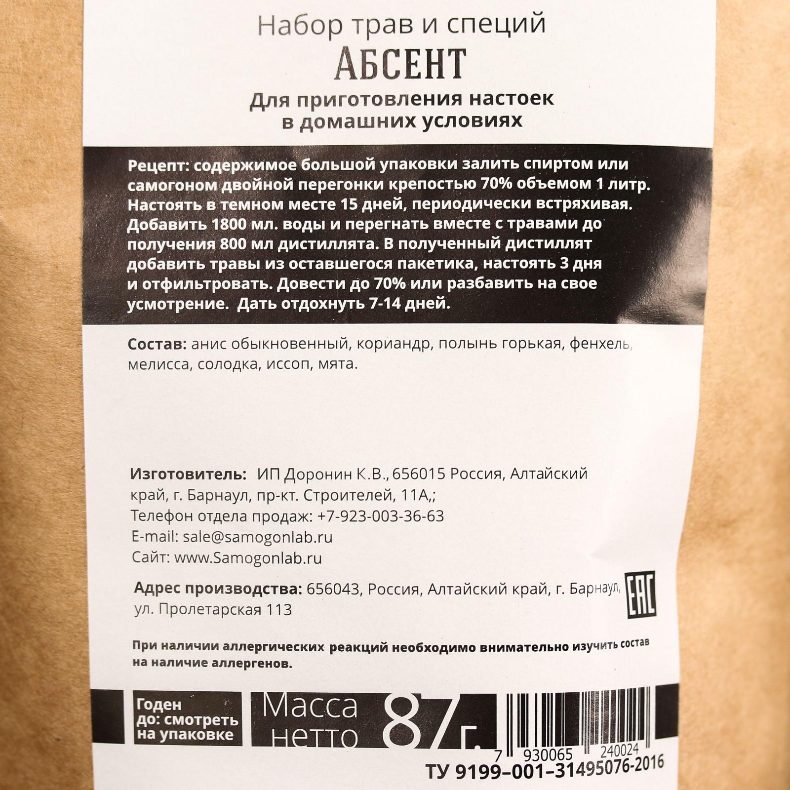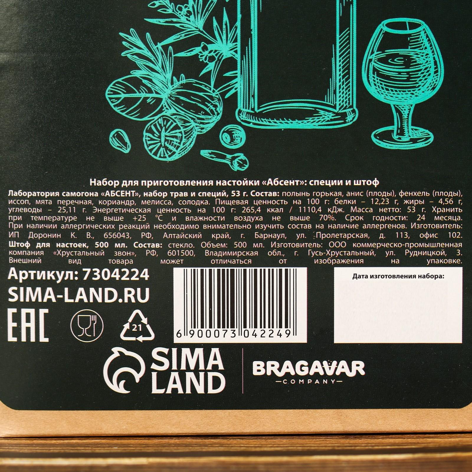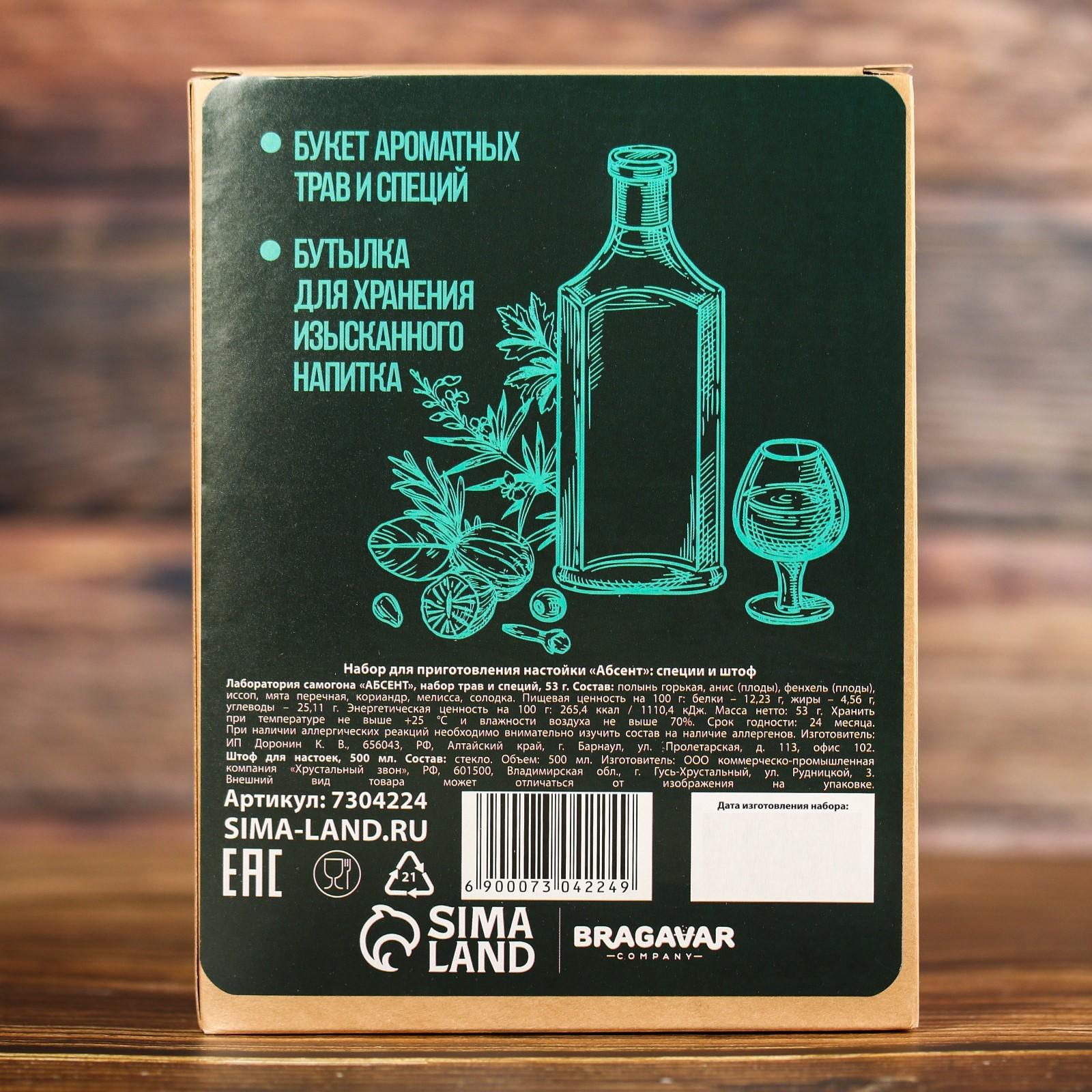 Набор для приготовления настойки «Абсент»: травы и специи 53 г., штоф 500 мл. 7304224