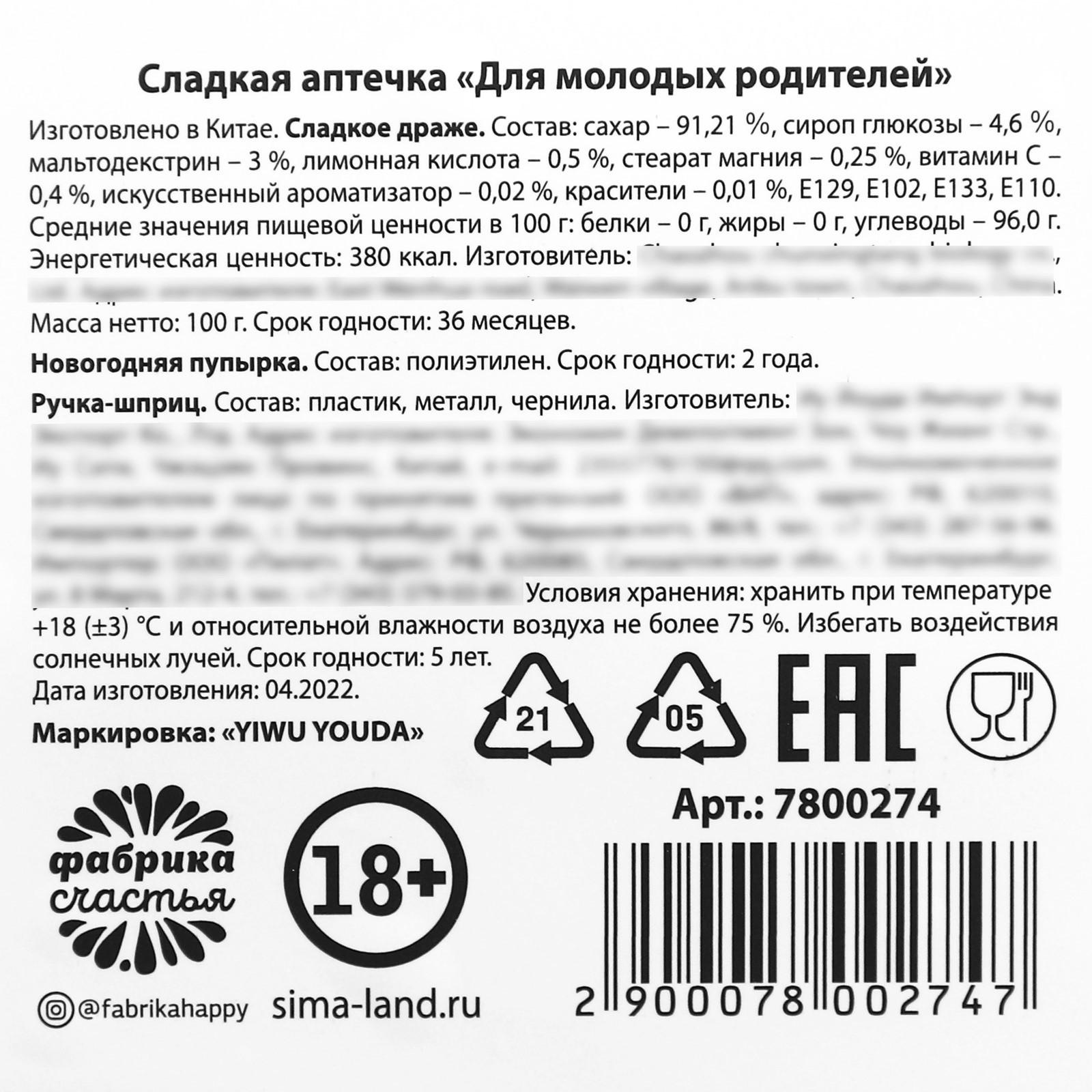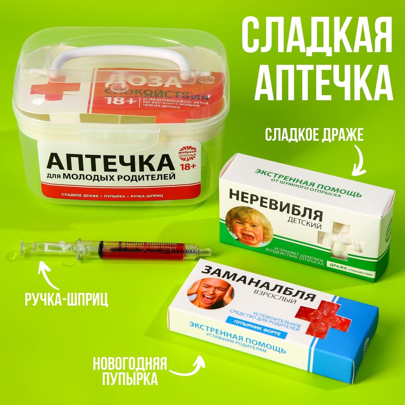 Сладкая аптечка «Для молодых родителей»: драже с витамином C, пупырка антистресс, ручка-шприц 7800274