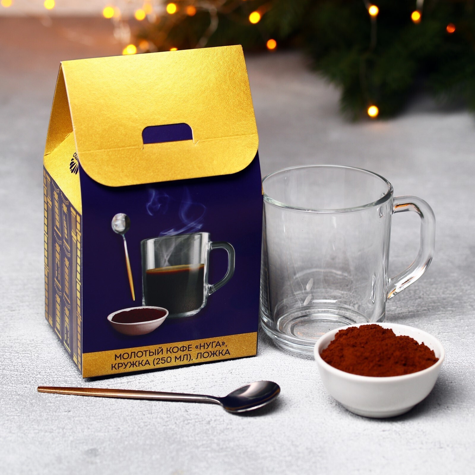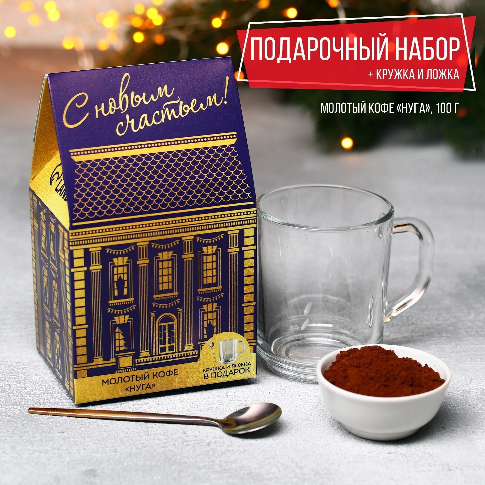 Набор "С новым счастьем": кофе молотый 100 гр кружка стекло и ложка 9099701