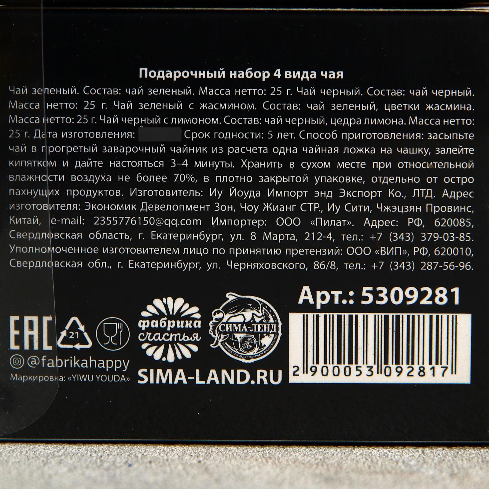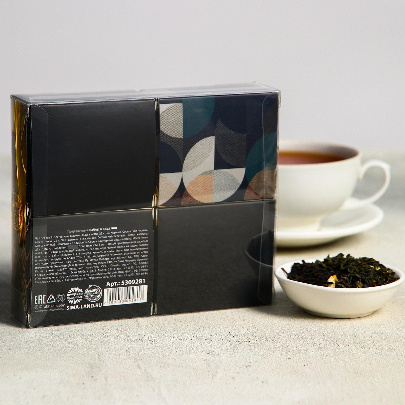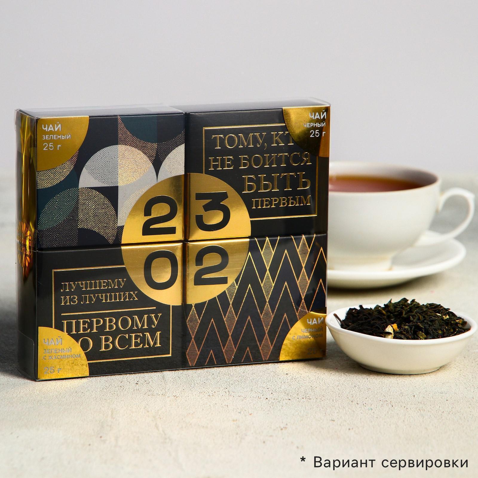 Подарочный набор 4 вида чая «23.02», чай чёрный, зелёный, чёрный с лимоном, зелёный с жасмином, 25 г. х 4 шт. 5309281