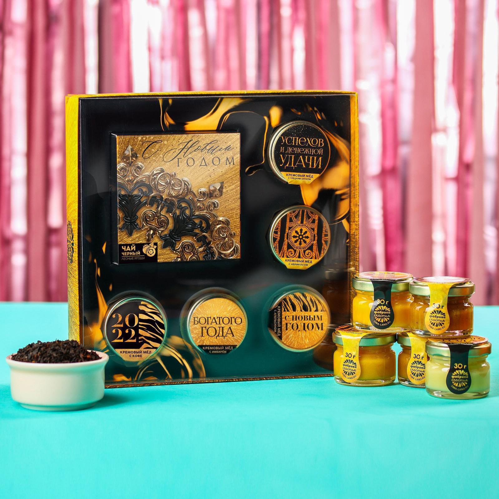 Подарочный набор «С Новым годом»: чай чёрный «Лесные ягоды» (50 г.), крем-мед (5 шт. x 30 г.) 6946756