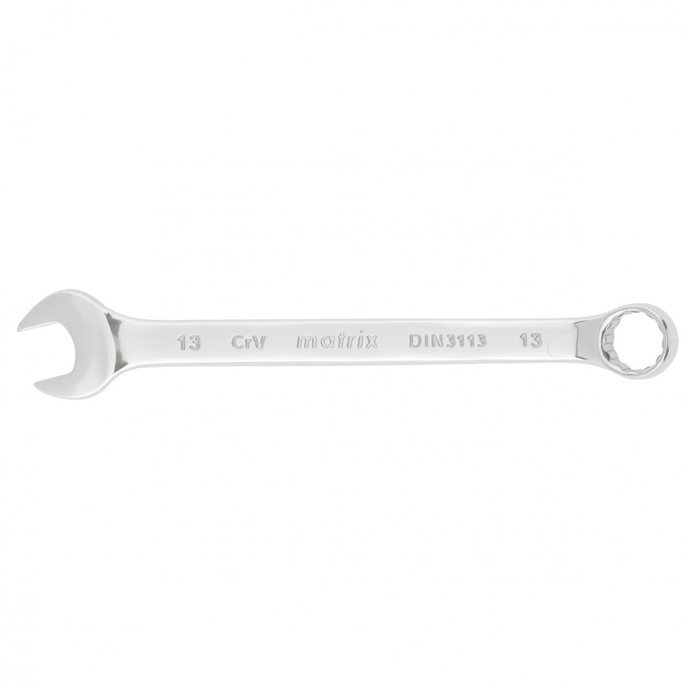 Ключ комбинированный Matrix 15157 из стали CrV, 13 мм, с покрытием «полированный хром», пригодится при проведении ремонтных работ дома или в гараже. С его помощью можно осуществлять быстрый монтаж и демонтаж крепежных элементов. Кольцевой зев обеспечивает удобство работы благодаря углу наклона 15 градусов относительно плоскости инструмента.ПреимуществаКлюч из хромованадиевой стали обладает необходимыми прочностными характеристиками и высокой сопротивляемостью деформации.Рабочая часть ключа прошла закалку до твердости 45 HRC в соответствии с требованиями ГОСТа.Полированное хромовое покрытие защищает ключ от образования коррозии.Накидные части с 12-гранным профилем позволяют охватить крепеж по всей поверхности, за счет чего снижается риск деформации его граней.Ключ удобно хранить и он не потеряется во время транспортировки, т.к. упакован в пластиковый держатель.