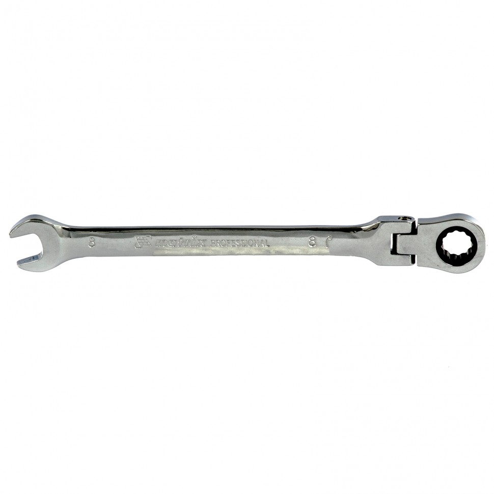 Ключ комбинированный, трещоточный шарнирный Matrix 14860, 8 мм, с покрытием «зеркальный хром», пригодится автолюбителями и мастерам для фиксации и раскручивания крепежных элементов. Трещоточный механизм повышает скорость монтажа и легко справляется даже с закисшим крепежом. А шарнир эффективен для работы в труднодоступных местах, т.к. позволяет вращать рабочую головку под разным углом (0-180 градусов).ПреимуществаКлюч устойчив к механическим нагрузкам за счет прочной конструкции из высококачественной стали 40CrV.Хромоникелевое покрытие предотвращает образование коррозии на ключе.Накидная часть с 12-гранным профилем захватывает поверхность деталей полностью, поэтому повреждение их граней исключено.Храповый механизм на 72 зуба обеспечивает легкий и плавный ход ключа.Высокая твердость материала храпового механизма 58 HRC обеспечивает его надежность и долговечность.Ключ удобно хранить и транспортировать благодаря пластиковому держателю в комплекте.