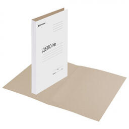 Имеет надпись "Дело №" на обложке. Папка стандартного формата А4 вмещает до 200 листов. Изготовлена из мелованного картона плотностью 440 г/м2. Отсутствие скоросшивателя позволяет не портить документацию дыроколом и при этом сохранить ее от деформации. Упакована в крафт-бумагу.