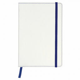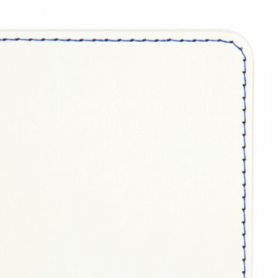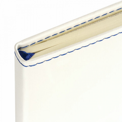 Твердая обложка стилизована под кожу белого цвета. Имеет закругленные уголки. Подходит для горячего тиснения. 80 листов позволят зафиксировать большой объем информации. Линовка блока в клетку (5х5 мм) дает возможность аккуратно заполнить цифровые значения, а также нанести чертежные зарисовки. Внутренний блок выполнен из офсета тонированного цвета плотностью 70 г/м2 и крепится к обложке с помощью книжного переплета. На внутренней стороне задней обложки есть декоративный конверт для разных мелочей в виде визиток, напоминалок и т. д. Снабжен резинкой-фиксатором, благодаря чему блокнот не откроется в сумочке или портфеле и листы не помнутся. Резинка-фиксатор и прострочка по периметру блокнота окрашены на контрасте цвета обложки, что придает блокноту изысканность и шарм. Дополнением является закладка-ляссе, с помощью которой при необходимости можно быстро открыть нужную страницу. Формат блокнота А5 (148х218 мм) позволит владельцу поместить его в кейс или сумку малых габаритов.