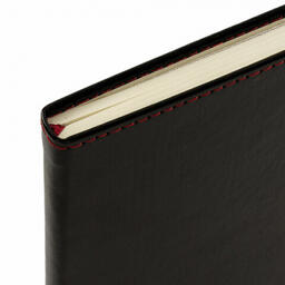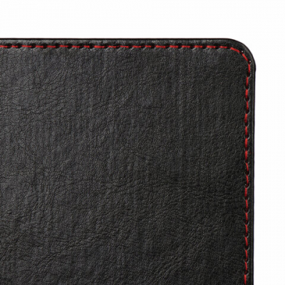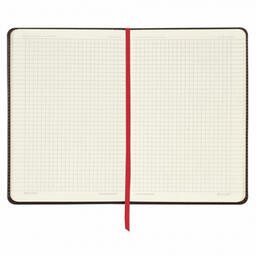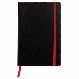 Твердая обложка стилизована под кожу черного цвета. Имеет закругленные уголки. Подходит для горячего тиснения. 80 листов позволят зафиксировать большой объем информации. Линовка блока в клетку (5х5 мм) дает возможность аккуратно заполнить цифровые значения, а также нанести чертежные зарисовки. Внутренний блок выполнен из офсета тонированного цвета плотностью 70 г/м2 и крепится к обложке с помощью книжного переплета. На внутренней стороне задней обложки есть декоративный конверт для разных мелочей в виде визиток, напоминалок и т. д. Снабжен резинкой-фиксатором, благодаря чему блокнот не откроется в сумочке или портфеле и листы не помнутся. Резинка-фиксатор и прострочка по периметру блокнота окрашены на контрасте цвета обложки, что придает блокноту изысканность и шарм. Дополнением является закладка-ляссе, с помощью которой при необходимости можно быстро открыть нужную страницу. Формат блокнота А5 (148х218 мм) позволит владельцу поместить его в кейс или сумку малых габаритов.