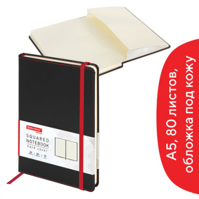 Блокнот в клетку с резинкой А5 (148x218 мм), 80 л., под кожу черный BRAUBERG "Office", 111027