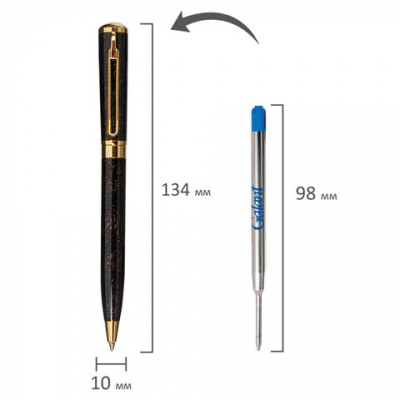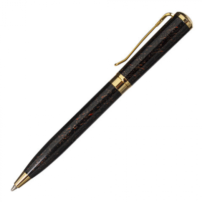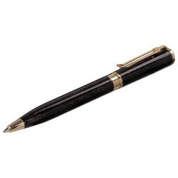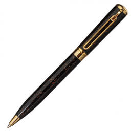 Утонченная модель ручки с корпусом из латуни темно-коричневого цвета и золотыми деталями прекрасно лежит в руке. Синий цвет чернил; длина стержня составляет 98 мм, а диаметр пишущего узла - 0,7 мм. Поставляется в индивидуальном подарочном футляре. Подходит для гравировки.