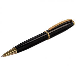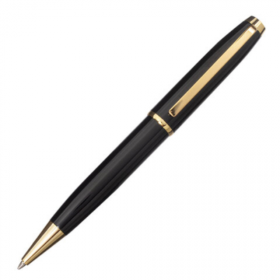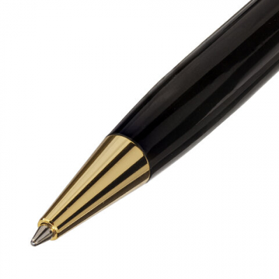 Изящная модель ручки с корпусом из латуни черного цвета и золотыми деталями прекрасно лежит в руке. Синий цвет чернил; длина стержня составляет 98 мм, а диаметр пишущего узла - 0,7 мм. Поставляется в индивидуальном подарочном футляре. Подходит для гравировки.