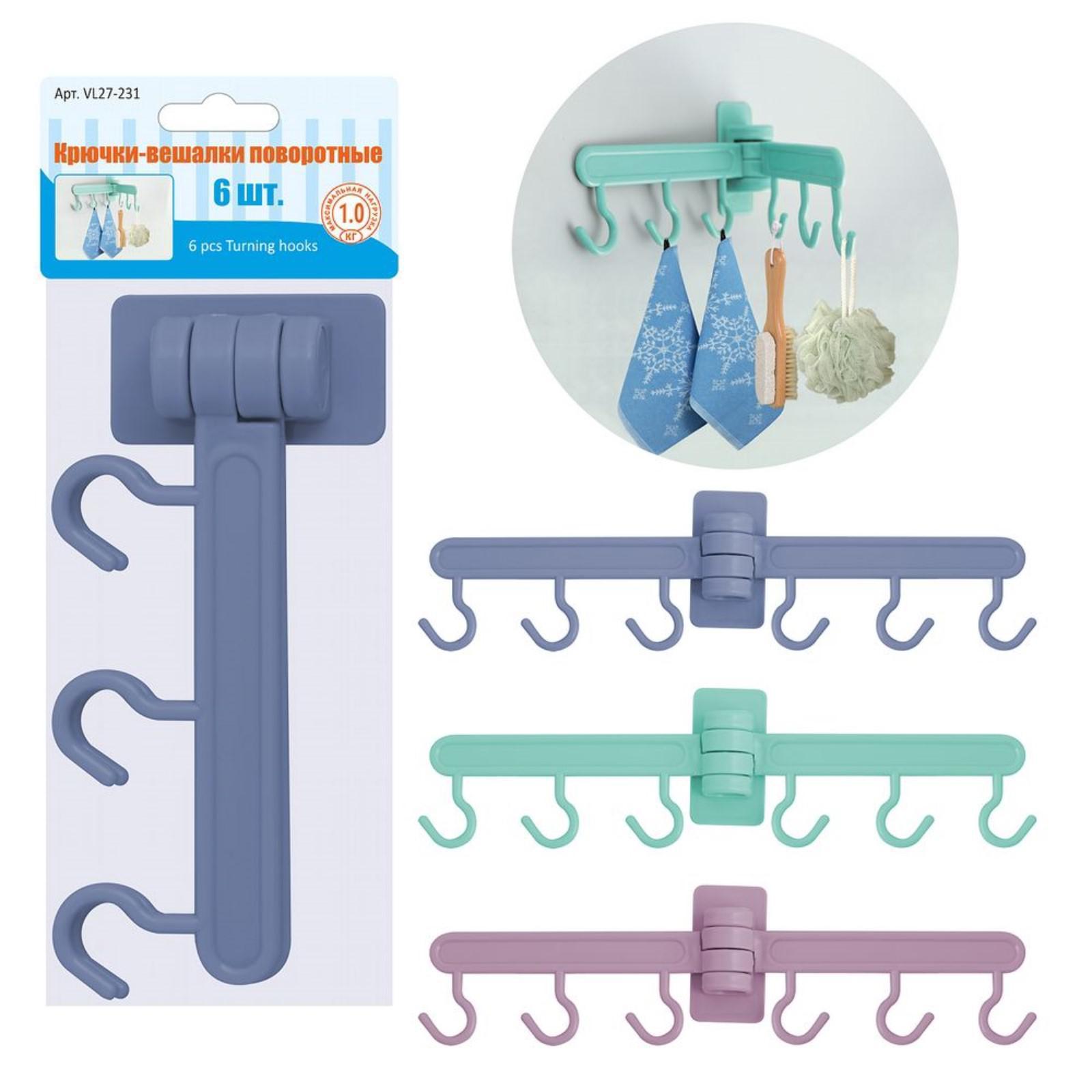 Крючки-вешалки поворотные, 6 шт, МИКС 7483358