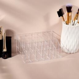 У вас накопилась подборка помад, тушей или пробников духов, а места для хранения не хватает? Приходится перебирать весь ассортимент косметики в поисках нужного тюбика или флакона? Воспользуйтесь органайзером, чтобы привести свою коллекцию в порядок и не тратить зря драгоценное время. Расставьте пузырьки и тубы по ячейкам, и вы сможете наглядно видеть, что где находится.