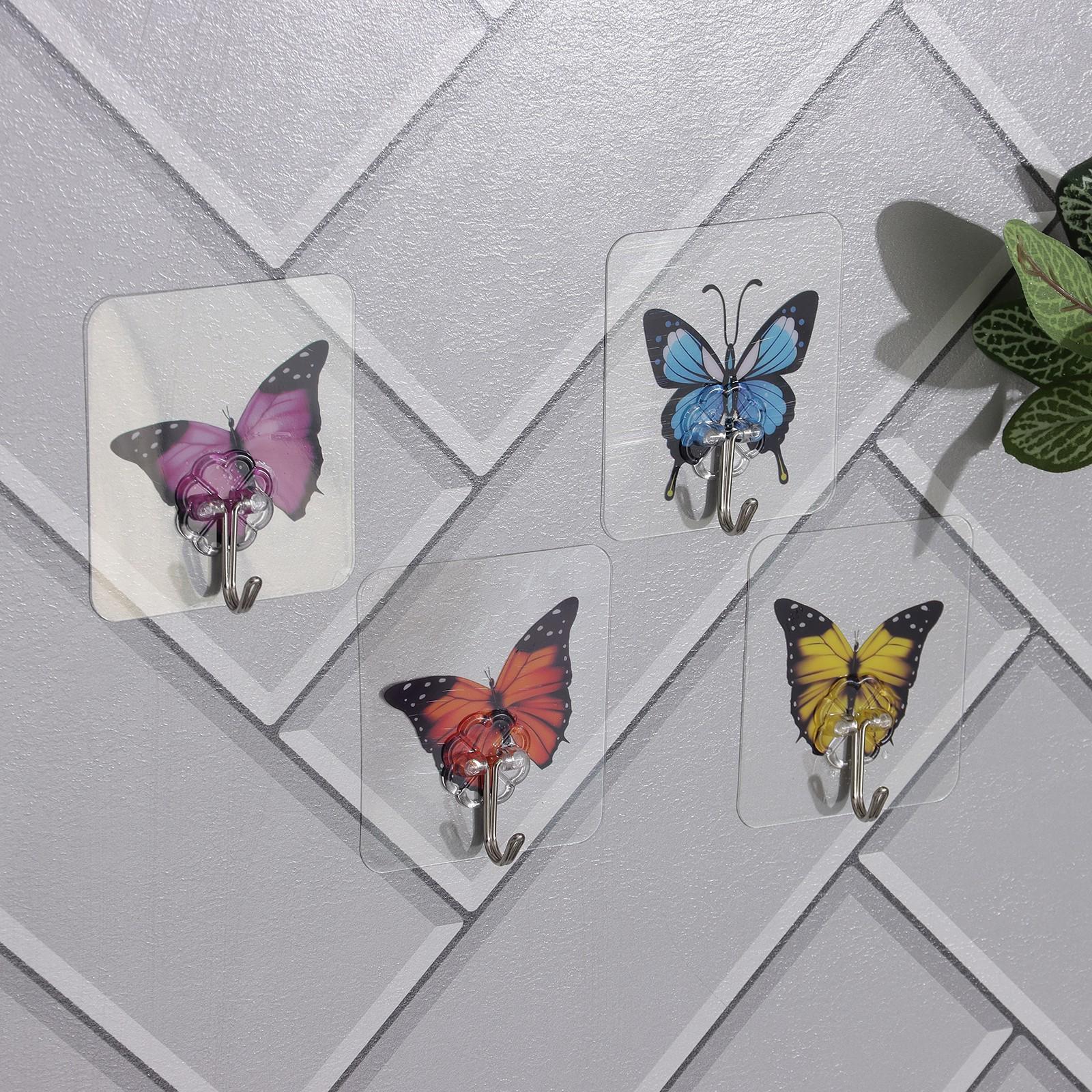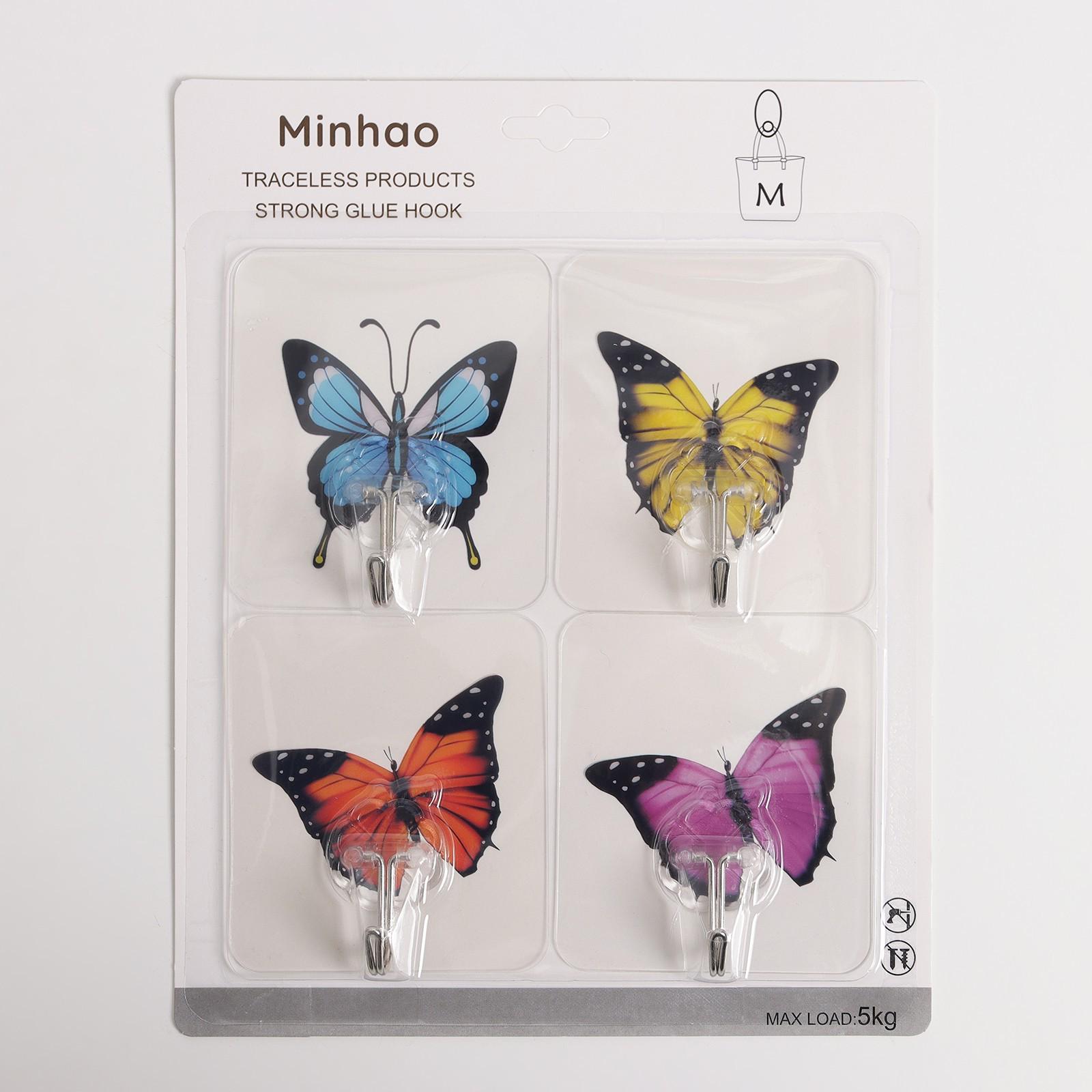 Набор крючков на липучке «Бабочки», 4 шт, цвет и рисунок МИКС 5525485