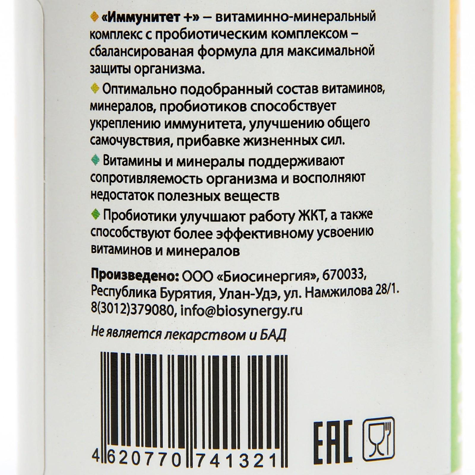 Витаминно-минеральный комплекс "Биосинергия", "Иммунитет+", 60 таблеток 9195022