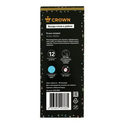 Ручка гелевая CROWN "Hi-Jell Pastel", ГОЛУБАЯ ПАСТЕЛЬ, узел 0,8 мм, линия письма 0,5 мм, HJR-500P SAM_143642
