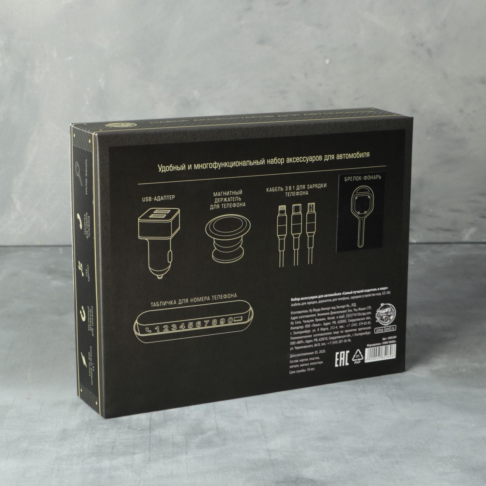 Набор аксессуаров для автомобиля «Самый лучший водитель в мире», 5 в 1 (магнитный держатель, USB-адаптер, кабель для зарядки, табличка для номера, фигурка в дефлектор) 4585269