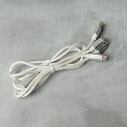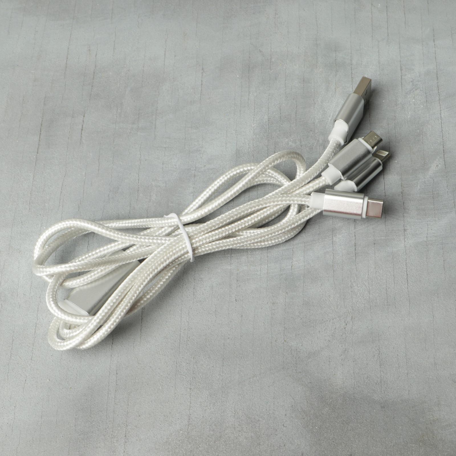 Кабель имеет 3 выхода для разных разъёмов телефона: на IPhone (разъём Apple) и Android (разъёмы microUSB и Type-C).