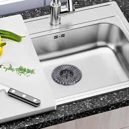 Фильтр для раковины имеет специальную решётчатую структуру. Благодаря такому устройству фильтр-сито эффективно задерживает твёрдые частицы и предотвращает попадание в канализационную трубу остатков пищи. Изделие не требует специального ухода: достаточно просто мыть его по мере загрязнения с небольшим количеством чистящего средства.